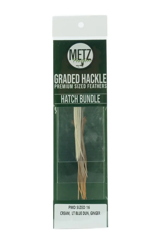Die Metz Hatch Packs wurden mit größter Sorgfalt und Fachkenntnis zusammengestellt, um Fliegenbindern eine zuverlässige Auswahl an hochwertigem Hecheln zu bieten. Speziell abgestimmt auf das Binden von naturgetreuen Nachbildungen der Schlupfphasen von Baetis-, PMD- und Caddis-Insekten, stellen sie eine wertvolle Ergänzung für jedes Fliegenbindesortiment dar.