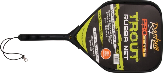 Für ein ermüdungsfreies Handling sorgt der ergonomische Gummigriff, der auch mit nassen Händen fest in der Hand liegt. Ein elastisches Sicherungsband ermöglicht die einfache Befestigung an der Watweste oder am Gürtel, damit der Kescher immer griffbereit ist. Das gummierte "No-Tangle"-Netz bietet maximalen Schutz für die Fischhaut und verhindert das Verfangen von Haken. Dank des tiefen Netzes mit flachem Boden liegt die Forelle sicher und ruhig im Wasser, was ein besonders schonendes Lösen des Hakens ermöglicht.